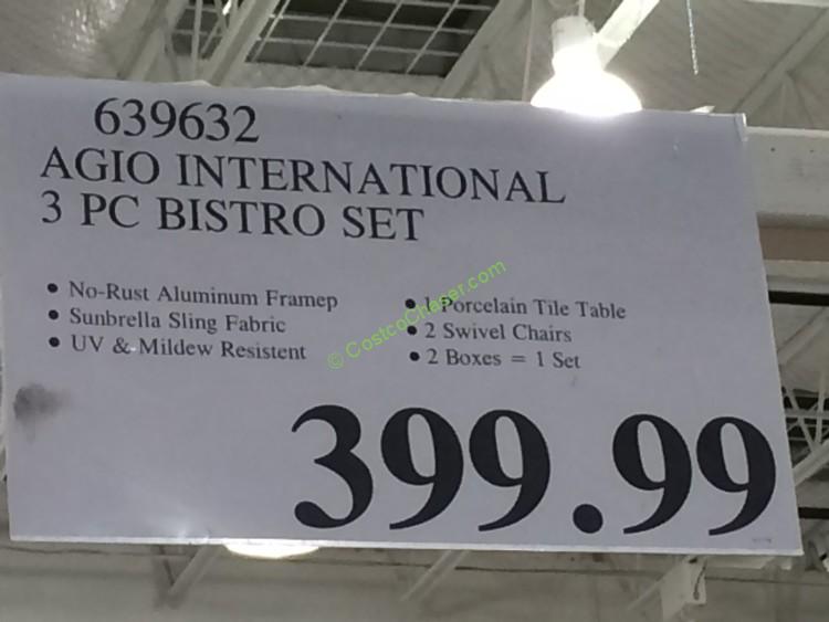 Costco Agio International 3 PC Bistro Set Price: $399.99