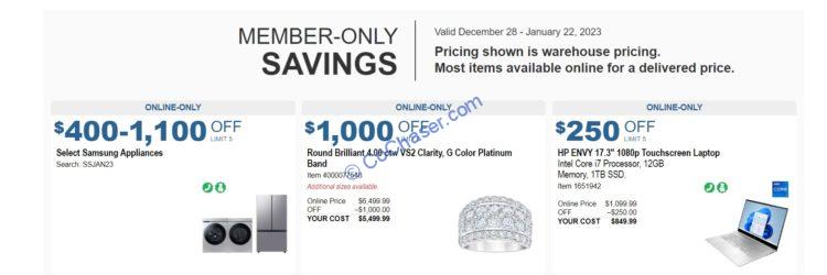 Costco January coupon book in 2023 is out now, deals valid from Wednesday 12/28/2022 – Sunday 01/22/2023. This Costco coupon book shows you the latest products and deals that you can earn instant savings when you shop at Costco with these coupons. Pricing shown is warehouse pricing. Most items available online for a delivered price.