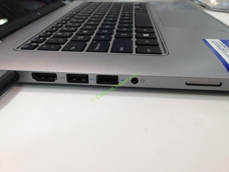 The air vents locate at the back bottom. If you found your laptop got heat up easily after months use, clean up the vents with a can of compressed air. We did not find any complaint about this laptop’s heat issue. But did see some reviews mentioned about short battery life. The laptop weights at 3.68 lbs, feels a little bit heavy in the ultrabook category.