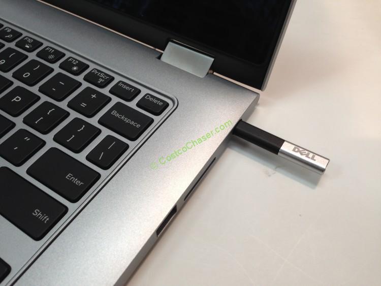 The laptop comes with a stylus which is hidden in its slot on the right side. I mistook it for the power button at the first glance.
