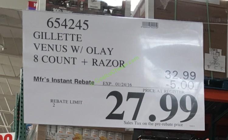 - Gillette Venus & Olay Cartridges, 8 ct, Costco Item # 654245, $27.99 after savings