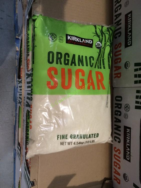 This Kirkland Signature Organic Sugar is fine granulated and USDA Organic Certified. It is sustainably harvested without chemical fertilizers, antibiotics, and pesticides.
