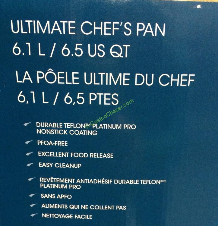 Kirkland Signature Ultimate Chef’s Pan is built from heavy-gauge hard-anodized aluminum which offers superior heat conductivity. The 18/10 cast stainless steel handles stays cool on cooktop and also makes the pan oven-safe. This Ultimate Chef’s pan is ideal for dishes which requires searing before roast.