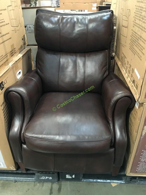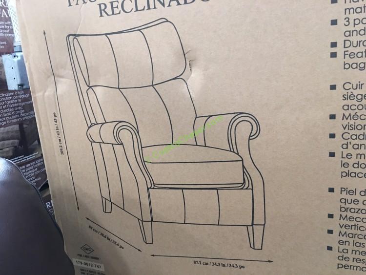 This standard size leather recliner has brown leather upholstery with durable wood frame that gives it both excellent comfort and reliability.