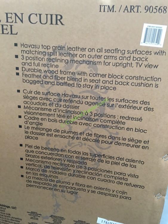 - Havasu top grain leather on all seating surfaces with matching split leather on outer arms and back