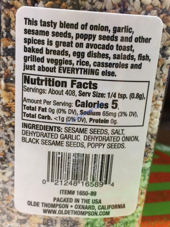 Costco Olde Thompson Everything Bagel 11.5 Ounce Container Price: $4.49