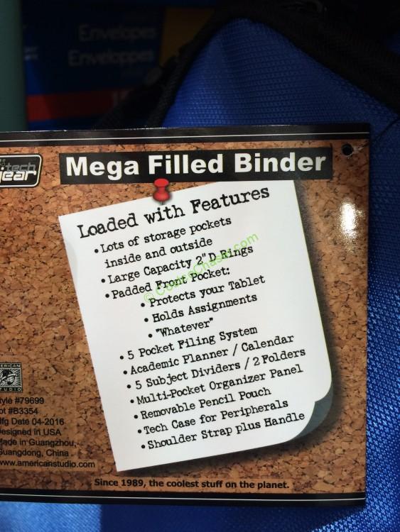 This Tech Gear Mega Filled Binder 2” D Ring has loaded with features: